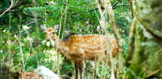 高知県の森林率は全国トップの84%。つまり日本一の森林県と言っていい。特徴は植林の多さであり、少し山に入るとスギ、ヒノキの林が育っている。しかし自然林もまだわずかに存在する。そのわずかな自然にシカが殺到した。(依光隆明)「源流域…