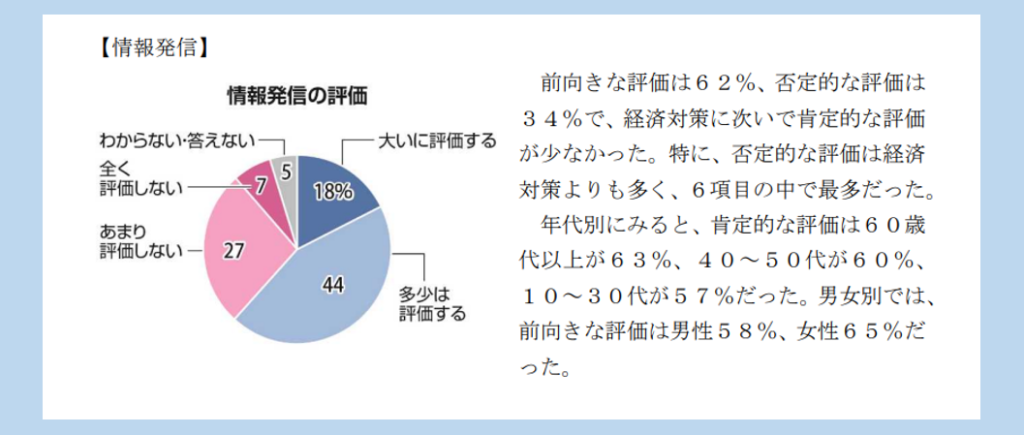 「情報発信」に対する県民アンケート結果。前向き評価が62%だった=「山梨県の新型コロナ対応の検証・記録業務に関する報告書」より