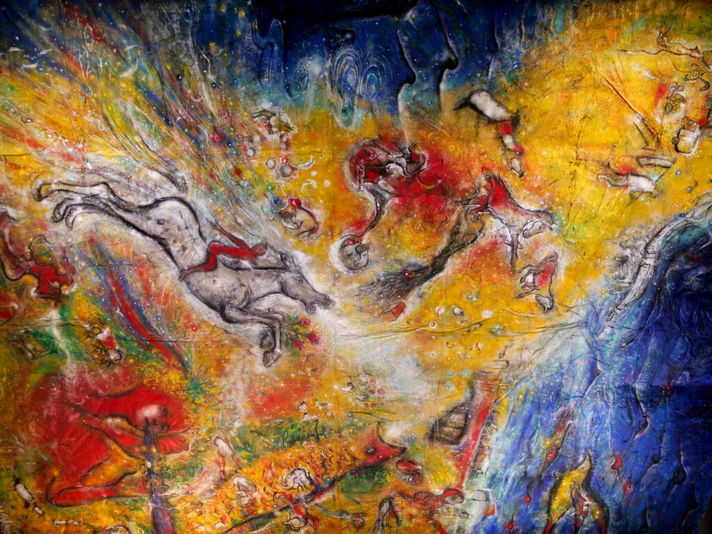 〈正義や平和な世界とは、お金より命であり、多様性や個性を尊重する、あらゆる命への共鳴と思いやりがあふれる世界ではなかったのか。放射能汚染で人間と自然と社会関係を変えたこんな世界は悪だ。この世界を変えたい―。白いヘドを吐いて死んだ馬に自分の思いを込めて、「命 煌めき」を創作した〉