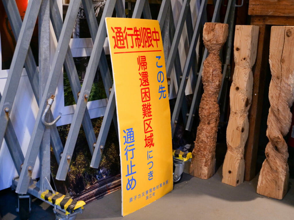 館内にはもう一つ、「この先 帰還困難区域につき 通行止め」の看板がある。一隅に設けられたバリケードに立てかけてあるのだが、これもアートだ。年月が経つにつれ、そして復興の掛け声が大きくなるにつれ、「帰還困難区域につき通行止め」の看板は少なくなっている。復興にこの看板は邪魔だ、放射能の減衰いかんにかかわりなくこの看板を一刻も早くなくしたい、と国や県は思っていることだろう。しかしアートとしての看板がお役所の思惑で消えることはない。