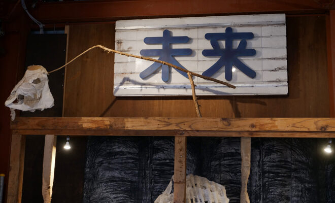 「未来」を載せた看板もそのときに壊され、パッカー車で産廃処理場に運ばれた。「おれたちの伝承館」にある「未来」は本物そっくりにアートとして作られたものだ。役所の幹部が館を訪れたとき、そこに掲げられた「未来」の看板を見てひどく驚いていた、と中筋さんは笑う。お役人が消したい歴史と、それをアートとして伝承しようと試みるアーティスト。意識の落差を「未来」の看板が象徴している。