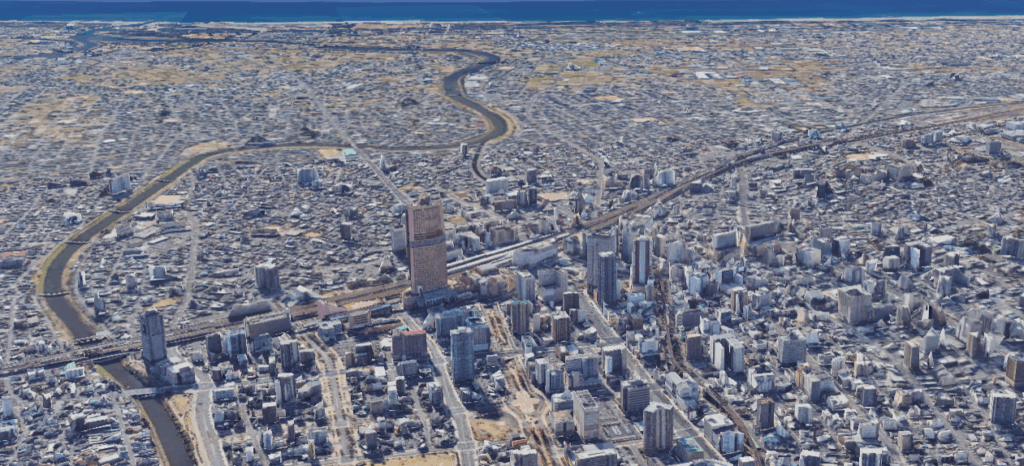 人口77万人の政令指定都市、浜松市。静岡県では最大の人口を擁している=Google Earthより
