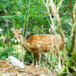 植林木が成長するまでの10年間、シカは頂芽(一番上の芽)や出たばかりの葉を食べる。周りに草が少ない冬から春にかけては特にそれらを食べるケースが多い。拡大造林が盛んだったのは1950年代前半から1970年代まで。メスジカの保護と天敵の不在が加わって、奥地ではシカが着実に増えていった。拡大造林にブレーキがかかったあと、それらのシカは新たな餌場を見つける必要に迫られる。餌場として魅力的だったのだろう、シカたちはさらに奥の自然林地帯にやってくる。三嶺の場合、それが2005(平成17)年頃だった。