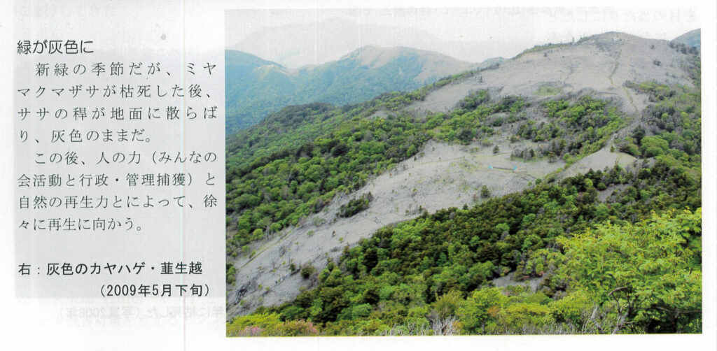 食害に遭った2009年のカヤハゲ、韮生越=『シカ食害で悩む三嶺の森』より