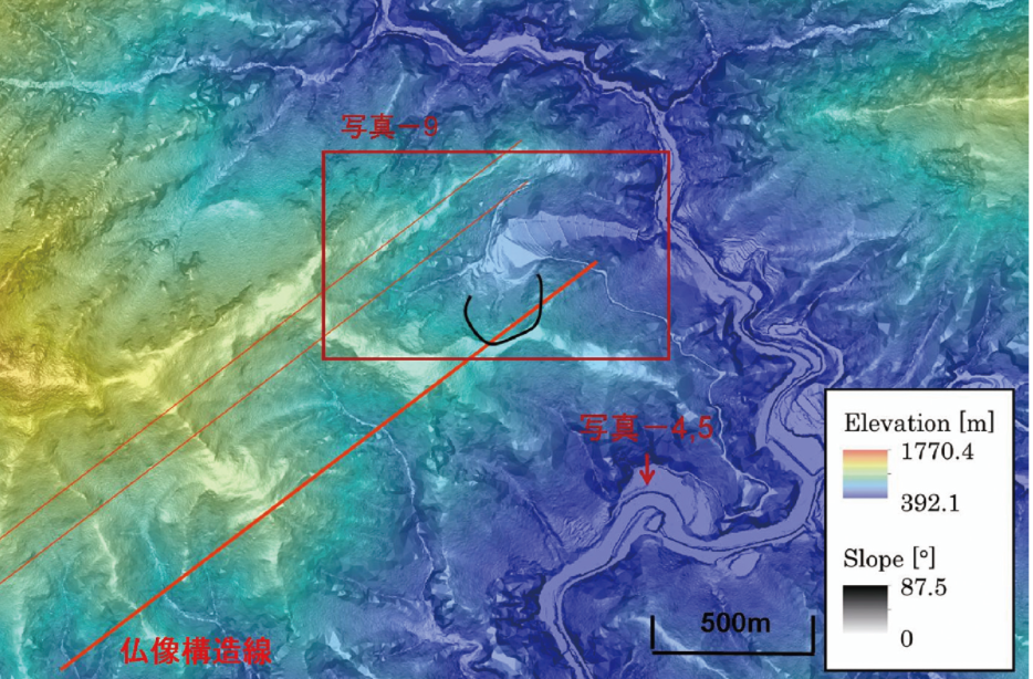 Type1や2に比べてType3の発生頻度は〈著しく低いが、規模が大きいことが特徴である〉とも指摘し、〈こうした崩壊は仏像構造線やそれに付随する断層沿いで発生している傾向にある〉と書いている。