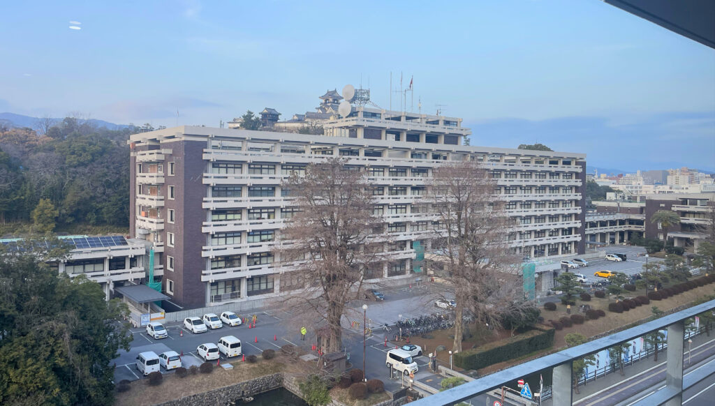 高知県庁本庁舎。1962(昭和37年)10月に落成した。設計は岸田日出刀東大教授、工費は9億3000万円。