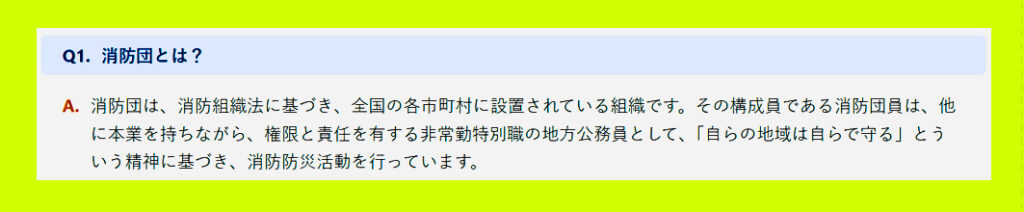 総務省消防庁のサイトより。消防団員は「非常勤特別職の地方公務員」と書かれている